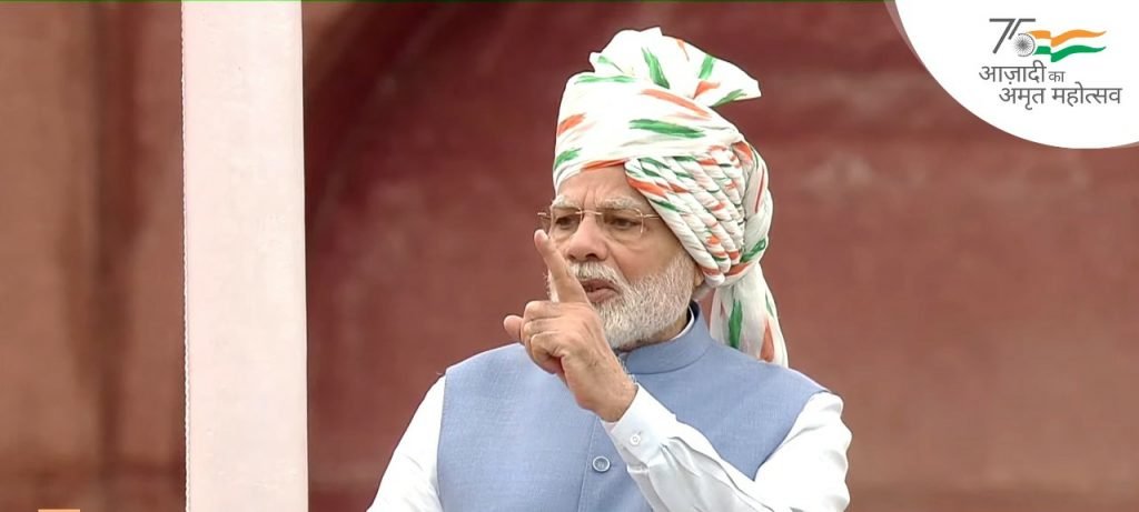 प्रधानमंत्री नरेंद्र मोदी लाल किले की प्राचीर से राष्ट्र को संबोधित करते हुए कहा हम अमृत काल में कदम रख रहे हैं और इस मौके पर ‘पंच प्रण’ का संकल्प लेते हैं.